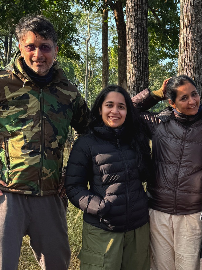 Though our work lives take us in different directions – Kartik in stock and equity investment, Neha as a graphic artist and illustrator, and Aashna as a sustainability consultant and dancer – one thing remains constant: our hearts belong to the jungle.